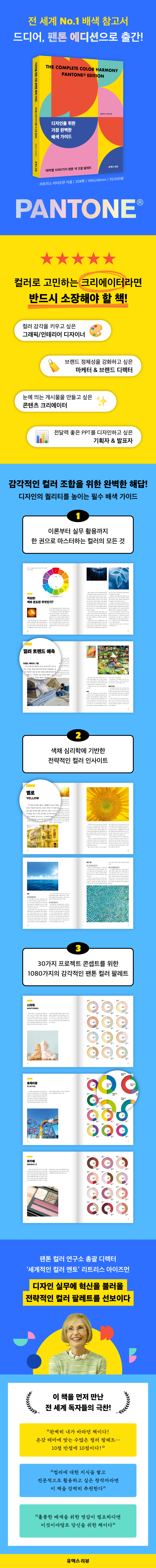 저자 리트리스 아이즈먼은 팬톤 컬러 연구소 총괄 디렉터이자 세계적인 컬러 컨설턴트로서, 색채 심리학에 근거한 전문적인 접근법을 통해 디자인 실무에서 컬러가 소비자의 감정과 행동에 미치는 영향을 소개한다. 색은 단순한 미적 요소를 넘어 지성과 감정에 깊이 연관되어 있어, 이를 적절히 활용하면 상품 매출 증대, 브랜드 인지도 향상, 특정 분위기 조성 등 실질적 효과를 기대할 수 있다. 이 책은 디자인 트렌드에 민감한 전문가들에게 혁신적 솔루션과 전략적 인사이트를 제공하며, 창의적인 아이디어의 출발점이 되어 줄 것이다.
